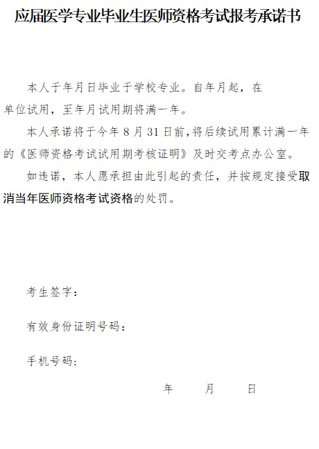 2021年應(yīng)屆醫(yī)學(xué)專業(yè)畢業(yè)生醫(yī)師資格考試報考承諾書下載
