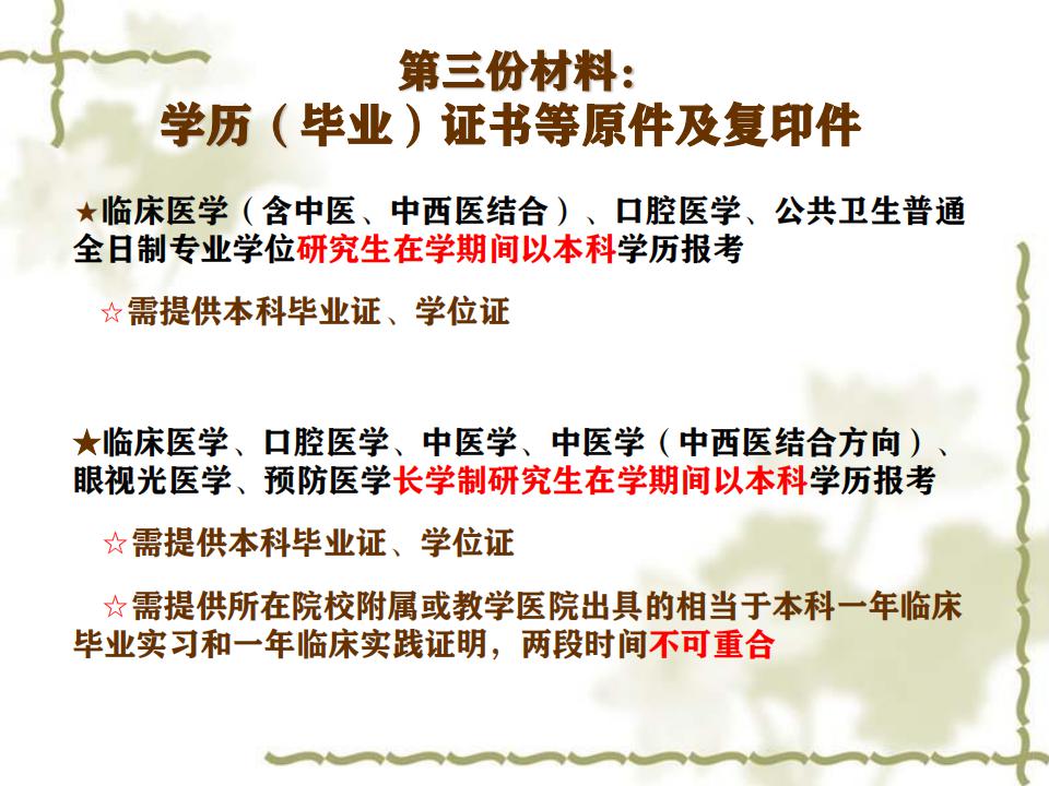 臨床醫(yī)學(xué)專(zhuān)業(yè)在研究生期間以本科學(xué)歷報(bào)考醫(yī)師考試的條件,蘇州市2021年醫(yī)師資格考試報(bào)名園區(qū)醫(yī)考現(xiàn)場(chǎng)審核注意事項(xiàng)大家都在關(guān)注,醫(yī)學(xué)教育網(wǎng)編輯為您整理臨床醫(yī)學(xué)專(zhuān)業(yè)在研究生期間以本科學(xué)歷報(bào)考醫(yī)師考試的條件如下。