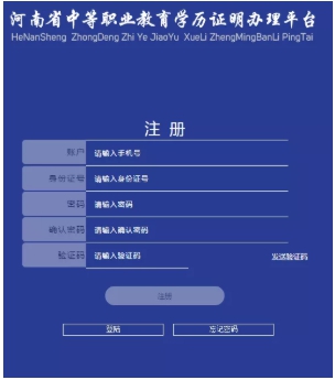 注意:由河南省政務(wù)服務(wù)網(wǎng)注冊的用戶請在河南省政務(wù)服務(wù)網(wǎng)的“便民服務(wù)”里的“中職學(xué)歷認(rèn)證申請”進(jìn)入本系統(tǒng)。