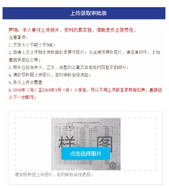 5、注意:2008年(含)至2015年3月(含)入學(xué)者,可以不用上傳新生錄取審批表,直接進(jìn)入下一步即可。上傳花名冊、和附加材料地方不用上傳,直接點下一步跳過即可