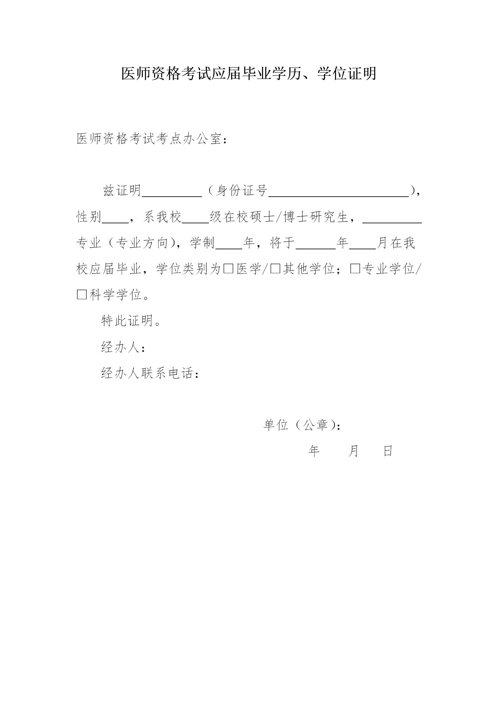 2021年國(guó)家醫(yī)師資格考試報(bào)名應(yīng)屆畢業(yè)研究生學(xué)歷學(xué)位證明