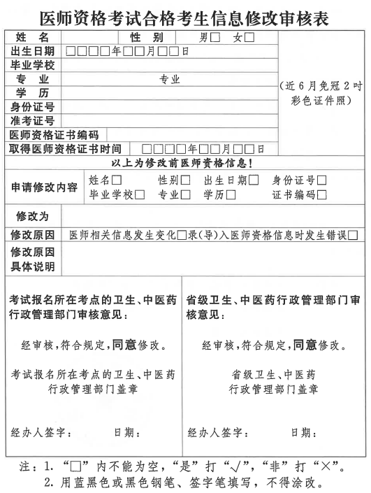 南陽(yáng)市中西醫(yī)執(zhí)業(yè)醫(yī)師資格考試合格考生信息修改審核表