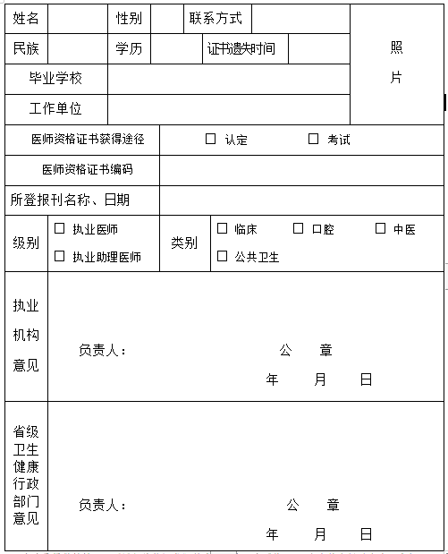 南陽考點中西醫(yī)執(zhí)業(yè)醫(yī)師《醫(yī)師資格證書》補(bǔ)發(fā)申請表