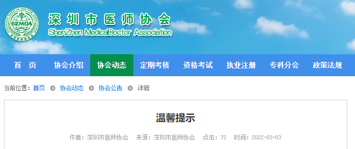 關(guān)于深圳考點(diǎn)辦理中西醫(yī)執(zhí)業(yè)醫(yī)師注冊(cè)等業(yè)務(wù)的溫馨提示