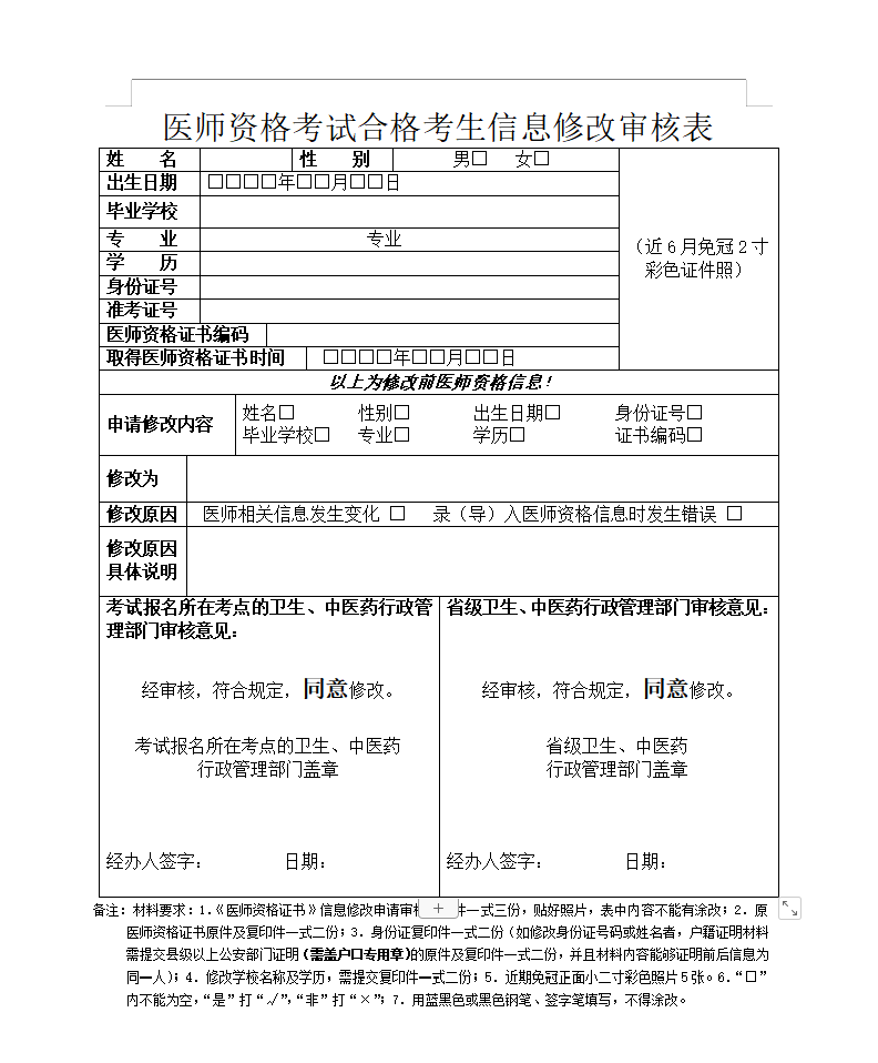 溫州考點中西醫(yī)執(zhí)業(yè)醫(yī)師《醫(yī)師資格考試合格考生信息修改審核表》