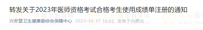 內(nèi)蒙古興安盟2023年中西醫(yī)執(zhí)業(yè)醫(yī)師合格考生使用成績(jī)單注冊(cè)的通知