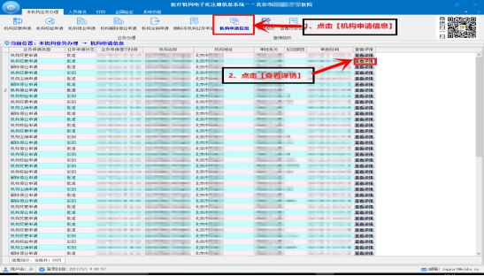 l 在“機構申請信息”窗口中可以查看本機構的業(yè)務申請記錄。如圖所示:
