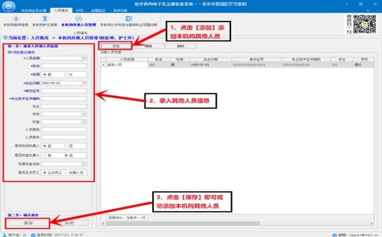 l 在圖中單擊【本機構其他人員管理】按鈕,進入“本機構其他人員管理”窗口。此處可添加除醫(yī)師、護士以外的人員。