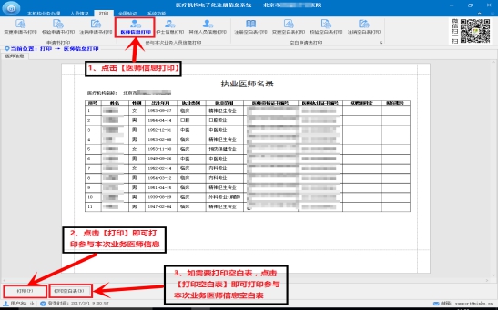 注:本機構已經(jīng)提交某項業(yè)務申請,并添加了參與本次業(yè)務醫(yī)師信息,才可以打印參與本次業(yè)務申請的醫(yī)師信息。