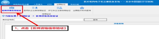 l 此功能可通過輸入醫(yī)師身份證號碼,來驗證醫(yī)師的資格信息。
