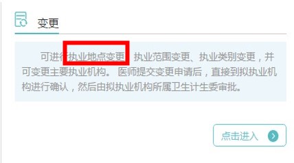 可進(jìn)行執(zhí)業(yè)地點(diǎn)變更、執(zhí)業(yè)范圍變更、執(zhí)業(yè)類別變更,并可變更主要執(zhí)業(yè)機(jī)構(gòu)。