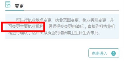 可進行執(zhí)業(yè)地點變更、執(zhí)業(yè)范圍變更、執(zhí)業(yè)類別變更,并可變更主要執(zhí)業(yè)機構(gòu)。