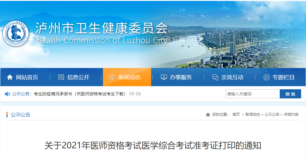 四川考區(qū)瀘州考區(qū)2021年中西醫(yī)助理醫(yī)師考試準(zhǔn)考證打印通知