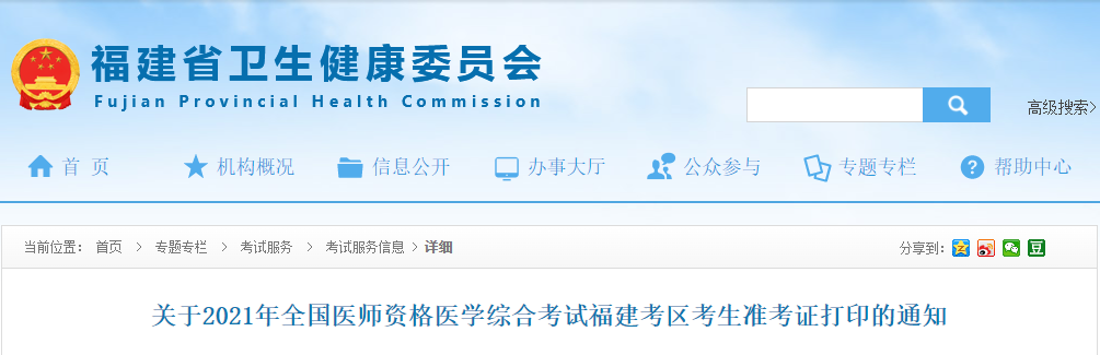 關(guān)于2021年全國(guó)醫(yī)師資格醫(yī)學(xué)綜合考試福建考區(qū)考生準(zhǔn)考證打印的通知