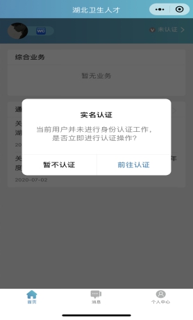 也可在首頁(yè)點(diǎn)擊的“未認(rèn)證”進(jìn)入認(rèn)證通道,或者在個(gè)人中心的實(shí)名認(rèn)證菜單進(jìn)行實(shí)名認(rèn)證操作。