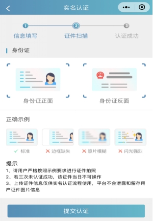 2)證件掃描,請(qǐng)嚴(yán)格按照示例進(jìn)行操作,如果掃描次數(shù)過(guò)多系統(tǒng)會(huì)提示進(jìn)行人工審核流程。
