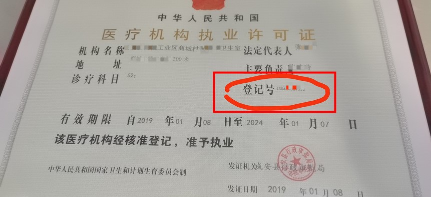 醫(yī)療機(jī)構(gòu)執(zhí)業(yè)許可證登記號(hào)圖示