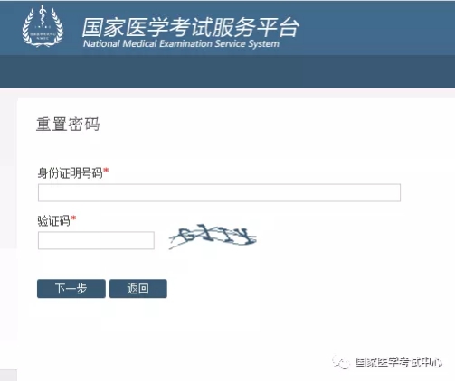 首先,打開(kāi)國(guó)家醫(yī)學(xué)考試生生服務(wù)系統(tǒng),點(diǎn)擊下方的忘記密碼按鈕,彈出重置密碼界面。