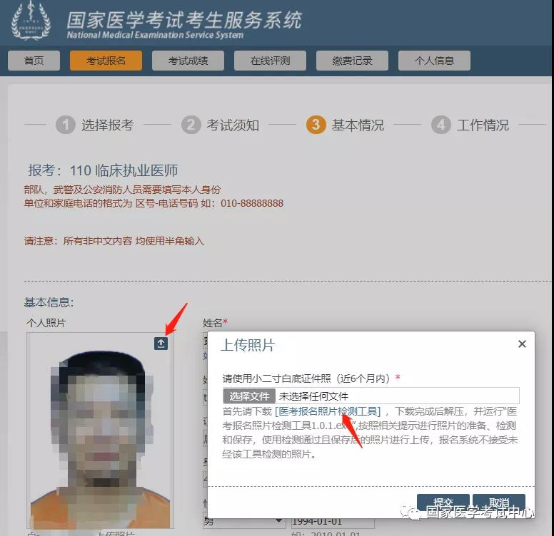 報(bào)名上傳照片前須通過“醫(yī)考報(bào)名照片檢測(cè)工具”(下載地址在上傳照片界面處提示,如下圖)進(jìn)行檢測(cè)處理。檢測(cè)過程請(qǐng)嚴(yán)格按頁面說明操作,檢測(cè)通過后保存,登陸國(guó)家醫(yī)學(xué)考試考生服務(wù)系統(tǒng)報(bào)名時(shí)上傳,報(bào)名系統(tǒng)不接受未經(jīng)該工具檢測(cè)的照片。請(qǐng)廣大考生提前準(zhǔn)備,以免影響考試報(bào)名。