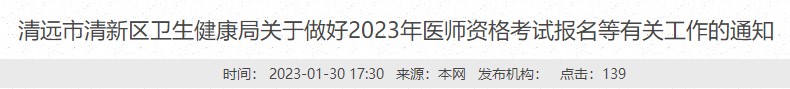2023醫(yī)師資格考試(清遠(yuǎn)清新區(qū))報名及現(xiàn)場審核時間安排
