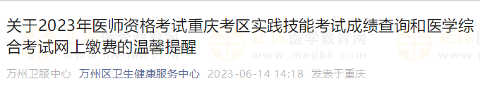 2023年中西醫(yī)助理醫(yī)師(重慶考區(qū))醫(yī)學(xué)綜合考試網(wǎng)上繳費溫馨提醒