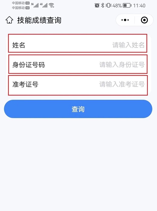3.輸入“姓名”、“身份證號”、“準考證號”進行查詢。