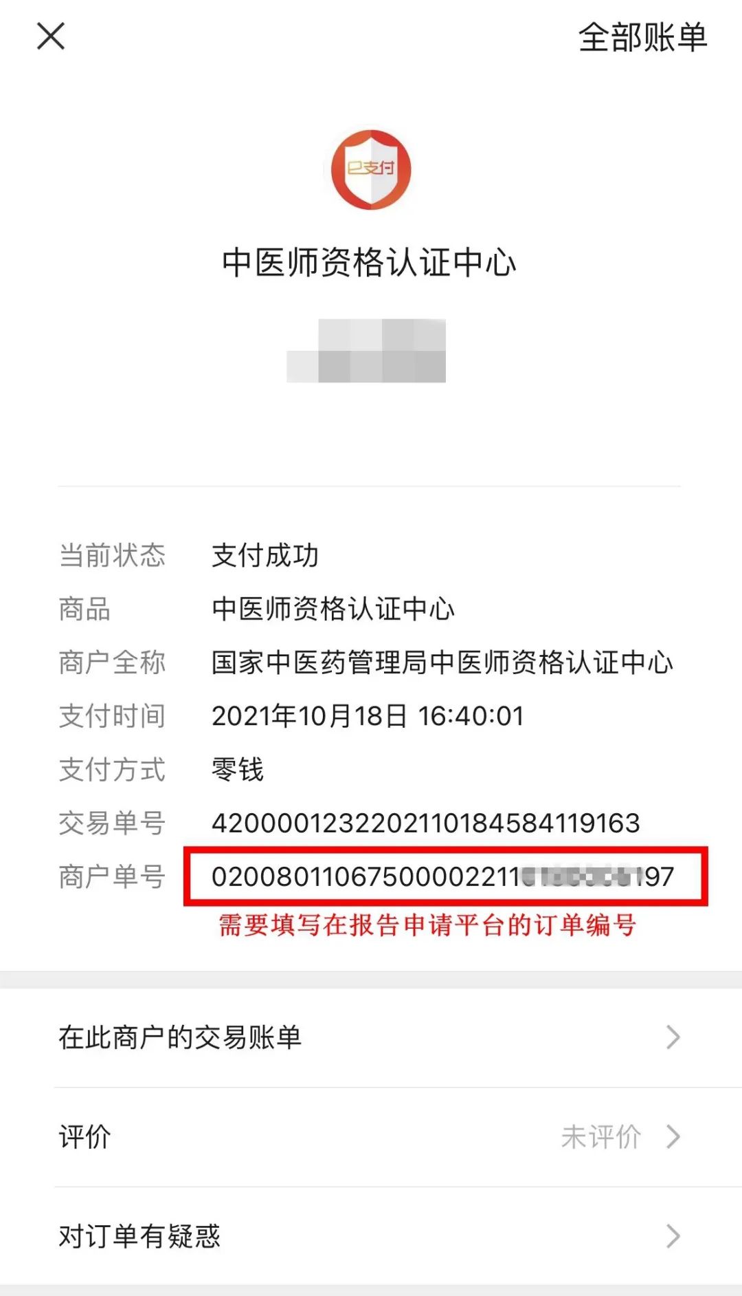 2.微信支付后可搜索“微信支付”,查看賬單詳情,點(diǎn)進(jìn)該訂單后可找到訂單編號(hào)。
