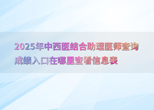 2025年中西醫(yī)結(jié)合助理醫(yī)師查詢成績?nèi)肟谠谀睦锊榭葱畔⒈?/h1>
