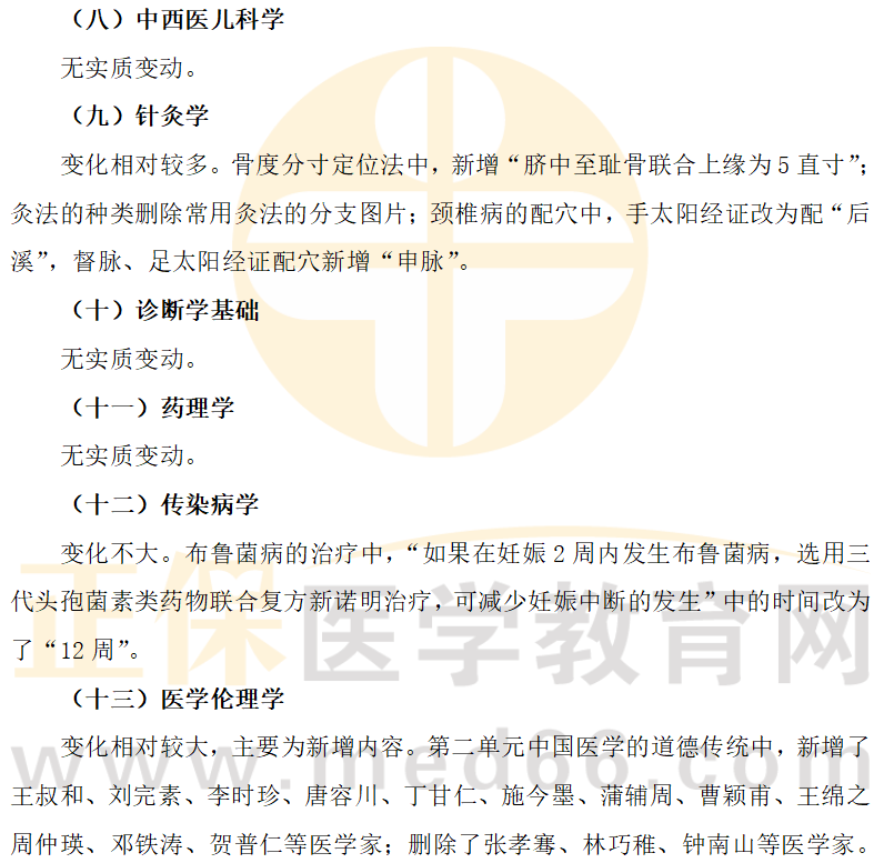 二、2026年中西醫(yī)助理醫(yī)師內(nèi)容變動