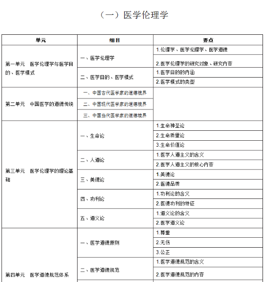 2020年中西醫(yī)助理醫(yī)師考試《醫(yī)學(xué)倫理學(xué)》大綱公布,今年采取了2020新版大綱,大家可自行下載: