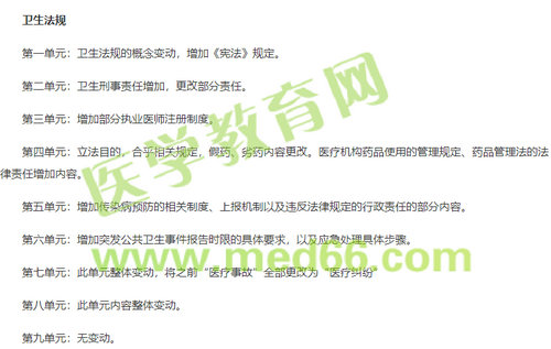 第一單元:整體變動(dòng),內(nèi)容更改為“醫(yī)學(xué)倫理學(xué)與醫(yī)學(xué)目的、醫(yī)學(xué)模式”。