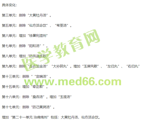 14.第十六單元牛膝的應(yīng)用有變化。骨碎補(bǔ)功效有變化。