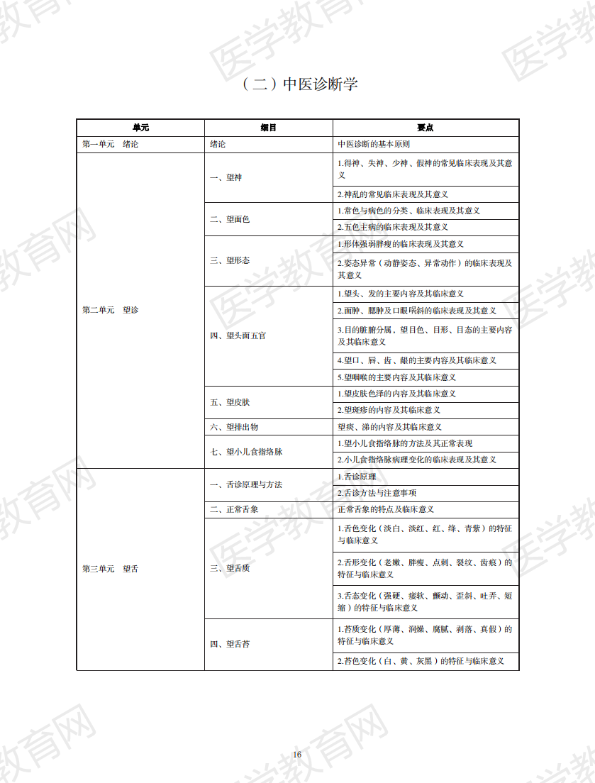 中醫(yī)診斷學(xué)科目新版考試大綱——2021年中西醫(yī)執(zhí)業(yè)助理醫(yī)師