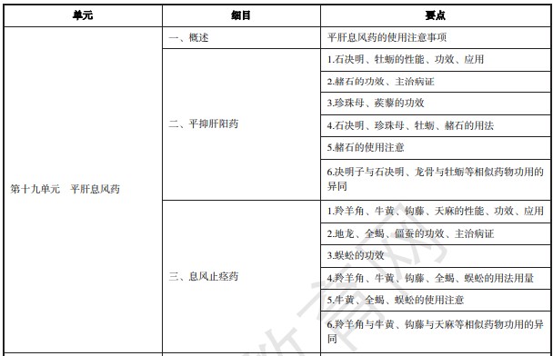 中西醫(yī)助理醫(yī)師2021年平抑肝陽藥、息風(fēng)止痙藥考哪些藥分享給大家,關(guān)于2021年中西醫(yī)結(jié)合助理醫(yī)師資格考試《中藥學(xué)》考試大綱的說明,相信很多2021年中西醫(yī)執(zhí)業(yè)助理醫(yī)師考生都在關(guān)注,中西醫(yī)執(zhí)業(yè)助理醫(yī)師中藥學(xué)考試大綱涵蓋了2021年考試的所有出題范圍,按照考試大綱不走彎路。下面是中西醫(yī)執(zhí)業(yè)助理醫(yī)師中藥學(xué)考試大綱內(nèi)容。