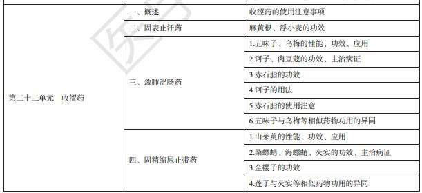 中西醫(yī)助理醫(yī)師固表止汗藥、斂肺澀腸藥、固精縮尿止帶藥考試大綱