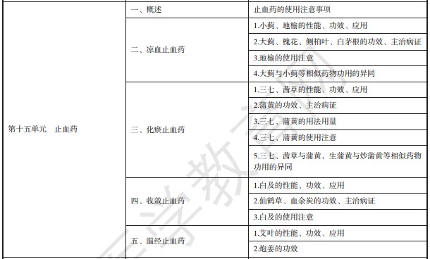 助理醫(yī)師涼血止血藥、化瘀止血藥、收斂止血藥、溫經(jīng)止血藥考試大綱