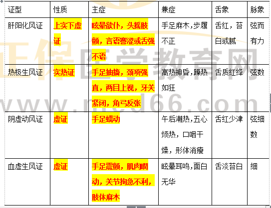34.肝風(fēng)內(nèi)動(dòng)四證鑒別見下表