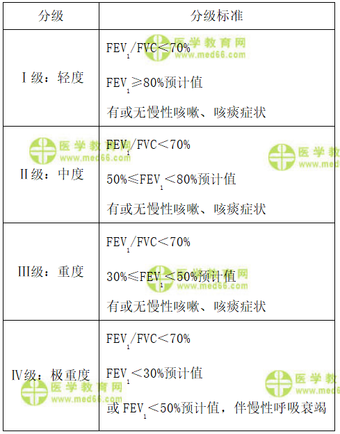 2022年中西醫(yī)執(zhí)業(yè)助理醫(yī)師考試“中西醫(yī)內(nèi)科學”考點:COPD嚴重程度分級