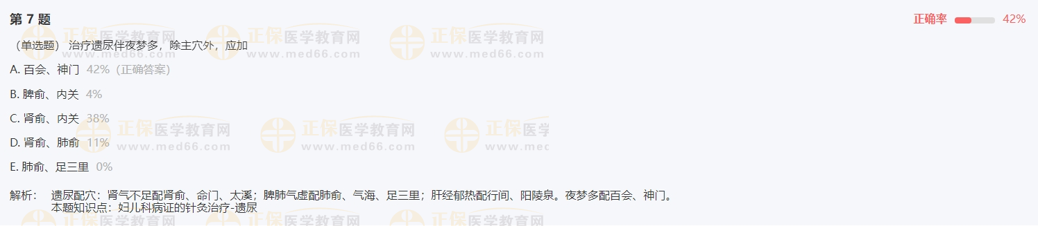 2024中西醫(yī)助理摸底測試題:治療遺尿伴夜夢多,除主穴外,應加