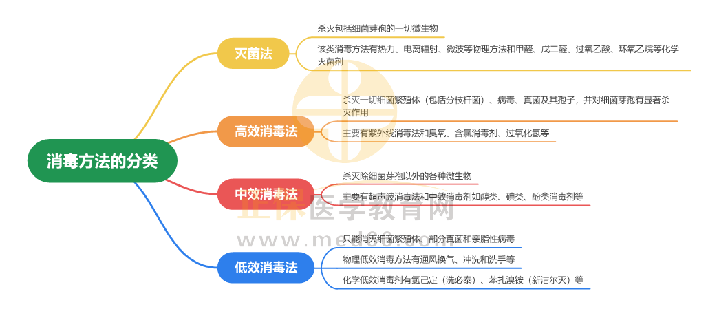 2024年中西醫(yī)助理醫(yī)師考試中,傳染病學(xué)考面廣、考點(diǎn)細(xì),不容易抓住,但是內(nèi)容簡單、基礎(chǔ),主要出題點(diǎn)有治療(藥物的使用和治療原則)、流行病學(xué)(傳染源、傳播途徑)、癥狀(部位)等。醫(yī)學(xué)教育網(wǎng)小編為大家整理“消毒方法的分類”考點(diǎn)思維導(dǎo)圖供大家復(fù)習(xí):