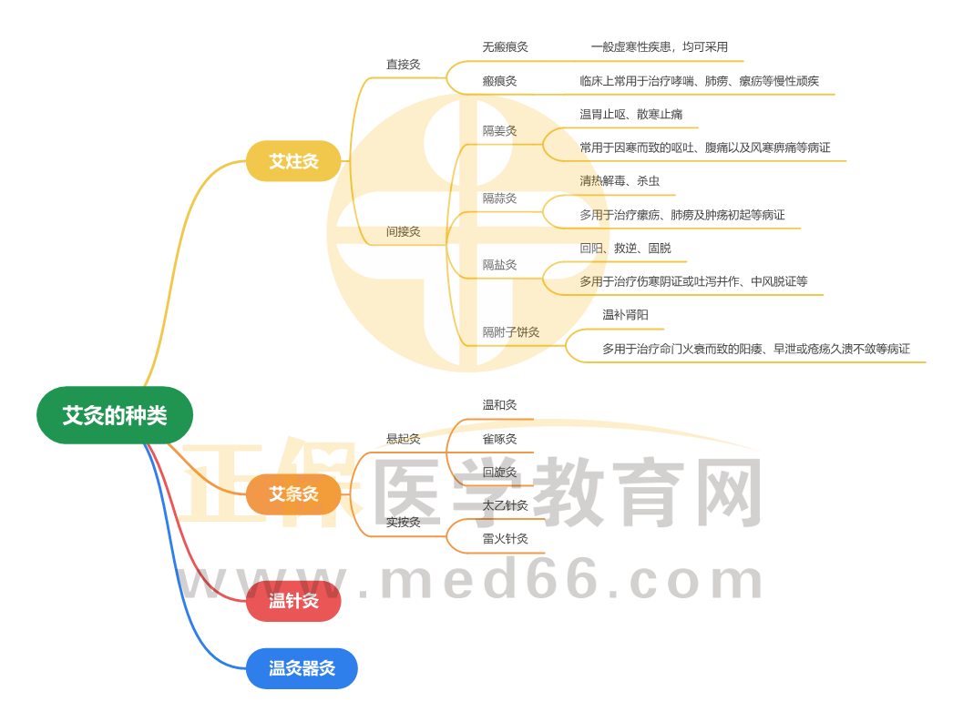 2024年中西醫(yī)助理醫(yī)師針灸學(xué)常見(jiàn)考點(diǎn)“艾灸的種類”思維導(dǎo)圖