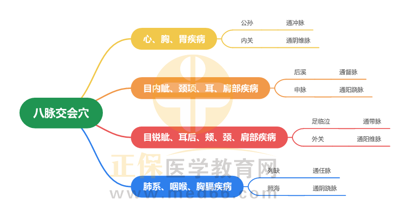 2024年中西醫(yī)助理醫(yī)師針灸學(xué)常見考點(diǎn)“八脈交會穴”思維導(dǎo)圖