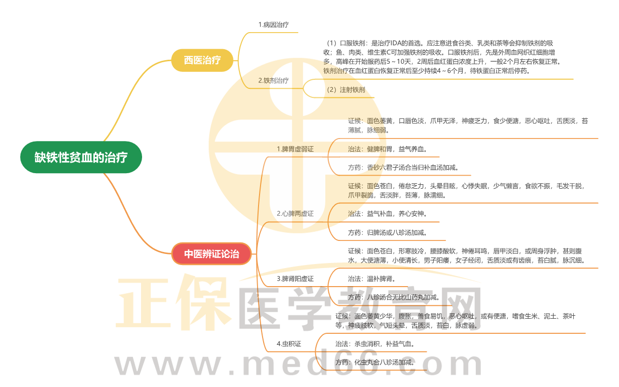 2024中西醫(yī)助理醫(yī)師“中西醫(yī)內(nèi)科學(xué)-缺鐵性貧血的治療”考點(diǎn)思維導(dǎo)圖