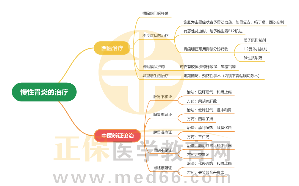 2024中西醫(yī)助理醫(yī)師“中西醫(yī)內(nèi)科學(xué)-慢性胃炎的治療”考點(diǎn)思維導(dǎo)圖