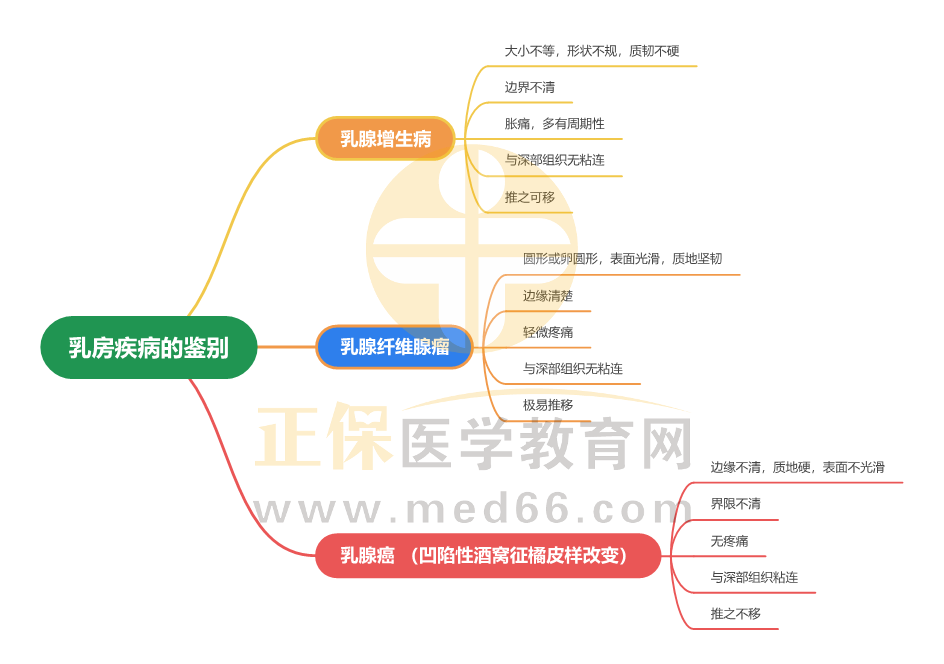 2024年中西醫(yī)助理醫(yī)師“中西醫(yī)外科學(xué)-乳房疾病的鑒別”考點(diǎn)思維導(dǎo)圖