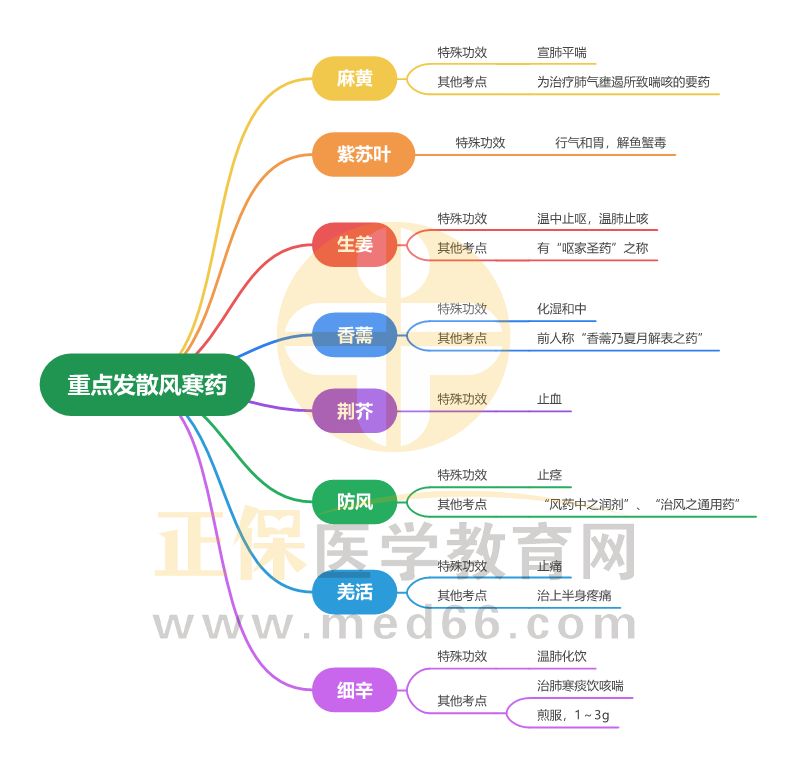 2024年中西醫(yī)助理醫(yī)師思維導(dǎo)圖:中藥學(xué)-重點(diǎn)發(fā)散風(fēng)寒藥