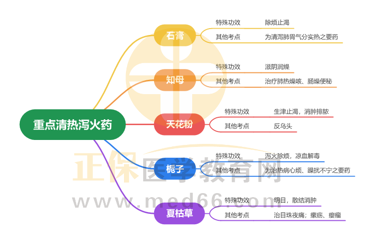 2024年中西醫(yī)助理醫(yī)師“中藥學(xué)-重點(diǎn)清熱瀉火藥”考點(diǎn)思維導(dǎo)圖