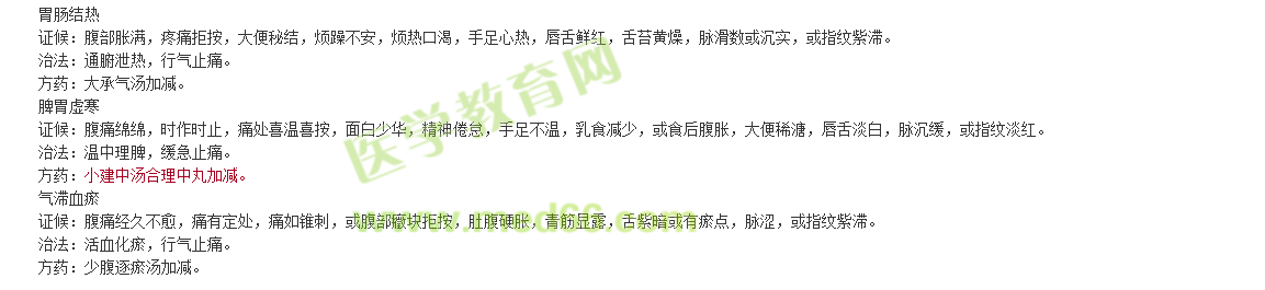 證候:腹部疼痛,陣陣發(fā)作,得溫則舒,遇寒痛甚,腸鳴轆轆,面色蒼白,痛甚者,醫(yī)學(xué)|教育網(wǎng)額冷汗出,唇色紫暗,肢冷,或兼吐瀉,小便清長(zhǎng),舌淡紅,苔白滑,脈沉弦緊,或指紋紅。