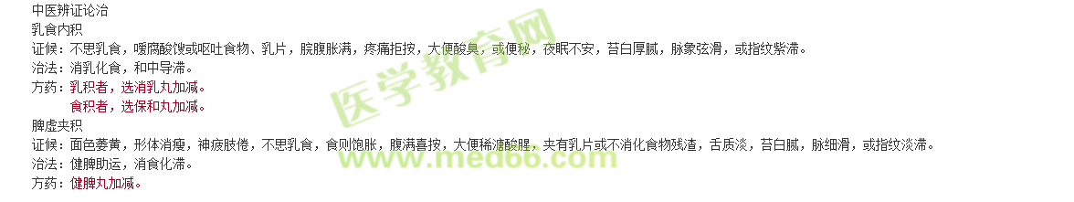 2.以不思乳食,食而不化醫(yī)學(xué)|教育網(wǎng),脘腹脹滿,噯氣酸腐,大便酸臭為特征。