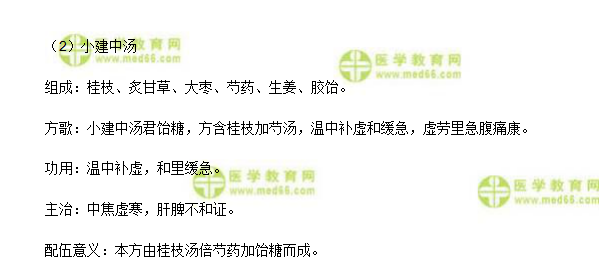 此部分為考試常考內(nèi)容,醫(yī)學(xué)|教育網(wǎng)需掌握各方劑的藥物組成、功用及主治病證,以方歌來(lái)加強(qiáng)記憶。注意陽(yáng)和湯主治陰疽,理中丸為異病同治之典范。小建中湯由桂枝湯倍芍藥加飴糖而成。